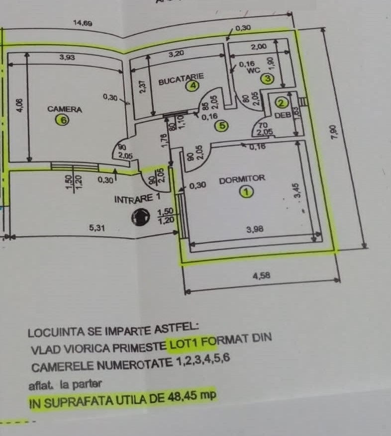 casa constructie caramida 1970, P + Et 1, se vinde parter, partea din spate, compusa din sufragerie, dormitor, hol, bucatarie, baie, camara, Su: 48, 45 mp, Sc; 60 mp, beci in indiviziune in suprafata de 16 mp, imbunatatiri de calitate recente: termopan exterior, gresie si faianta in baie si bucatarie, gresie hol parchet laminat in sufragerie si dormitor, CT, calorifere, usa termopan la intrare, geam cu aerisire exterioara la baie, utilitati: apa, gaze, lumina, canalizare, contuare separate, curte de 145 mp in indiviziune si parti egale, are cadastru si intabulare, bonus mobilata si utilata, oferta neg, vazuta MT