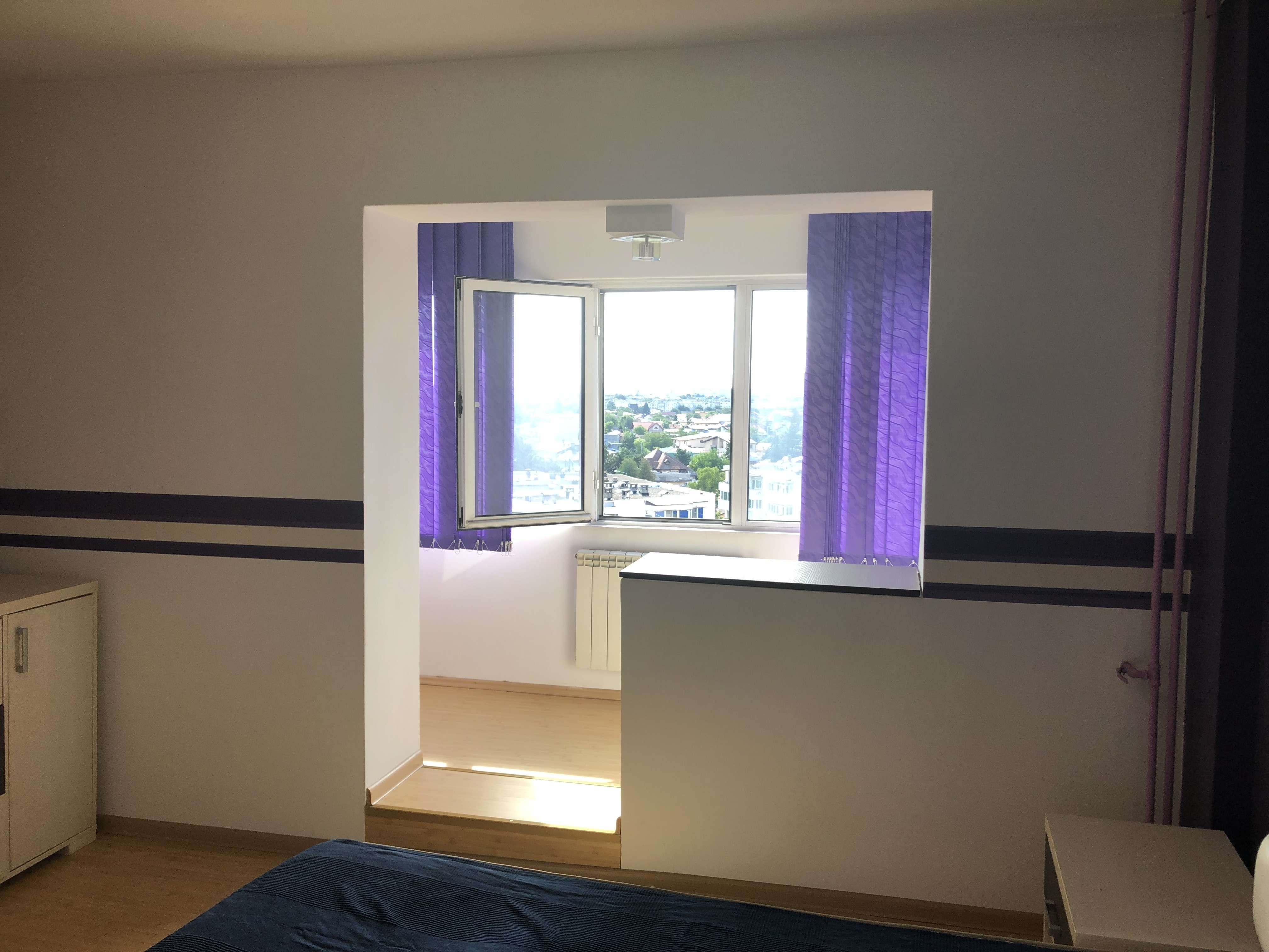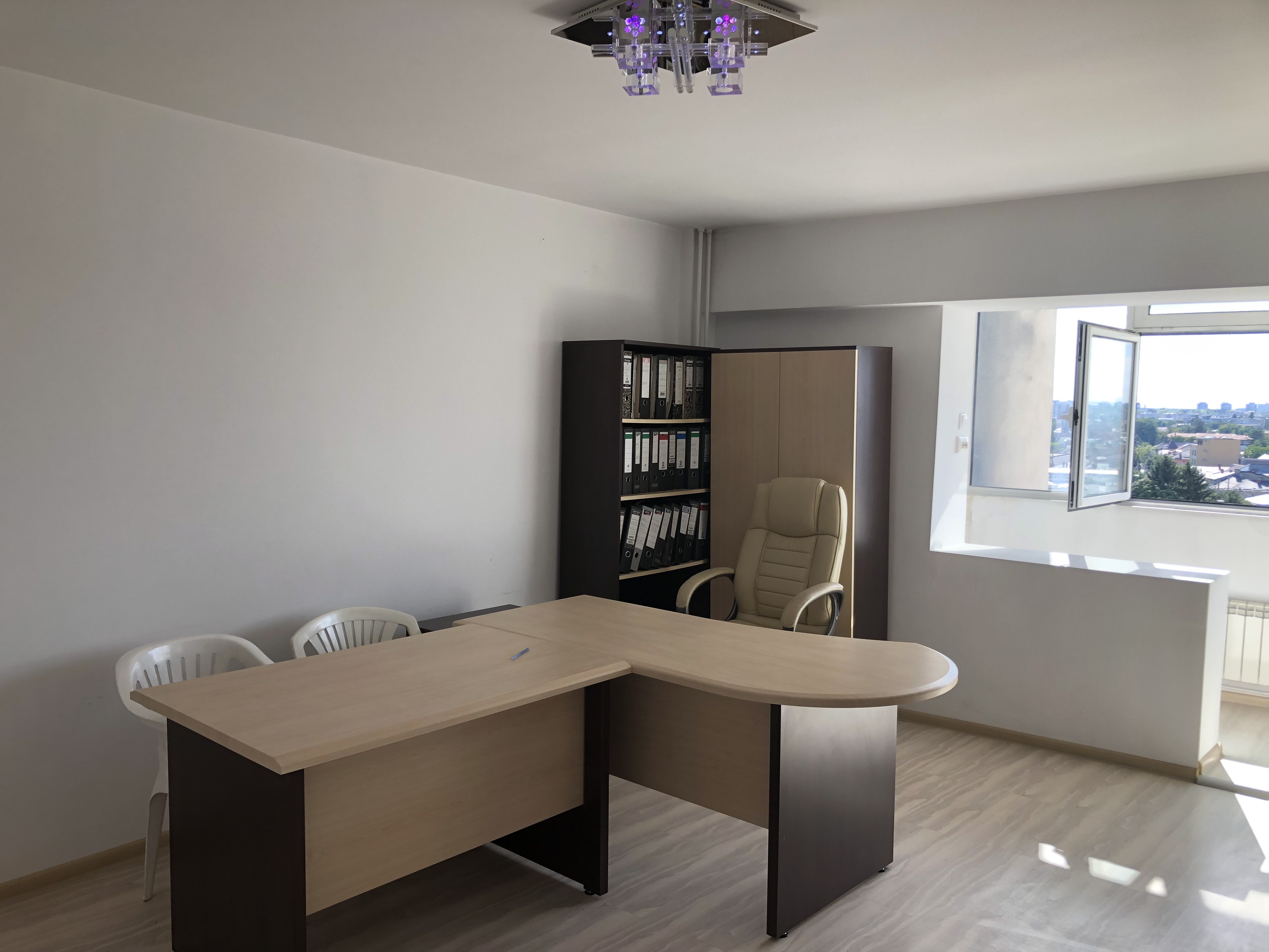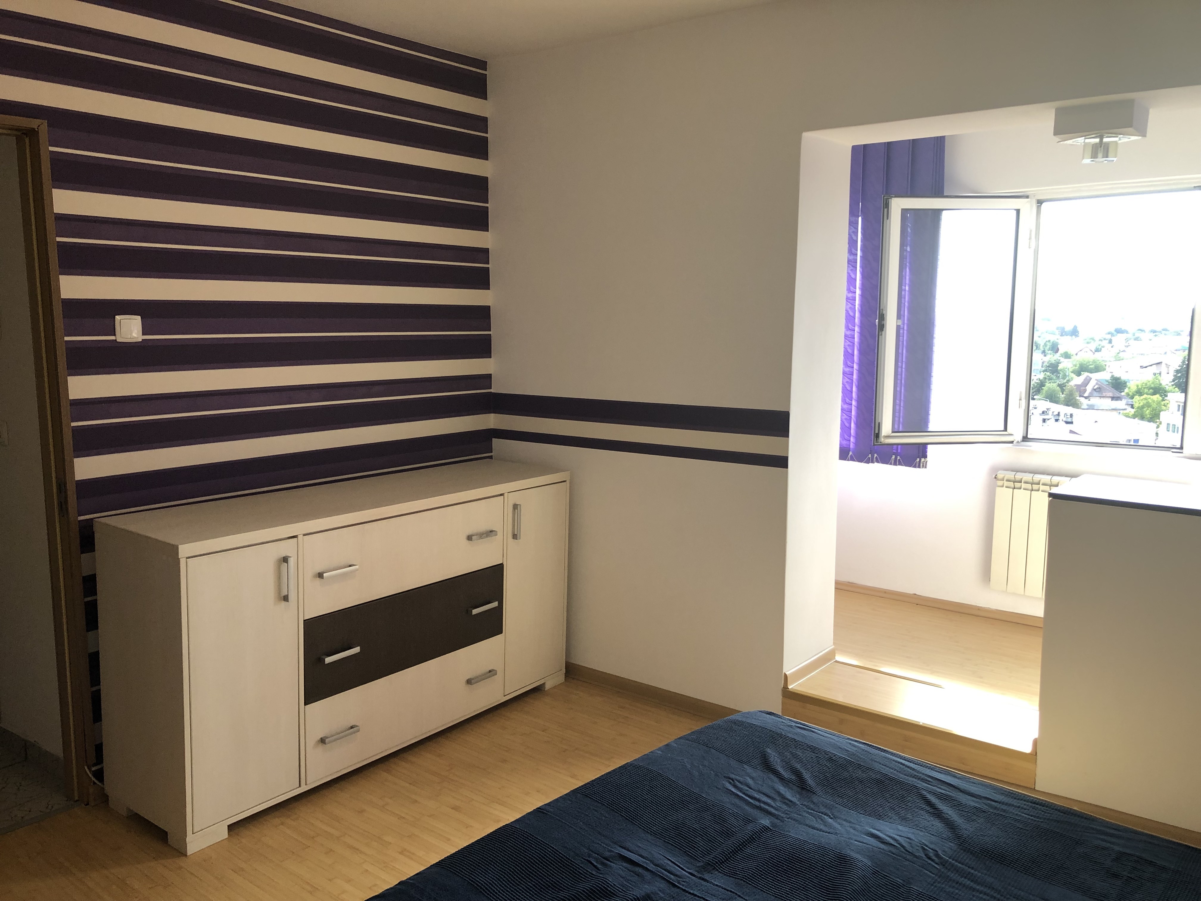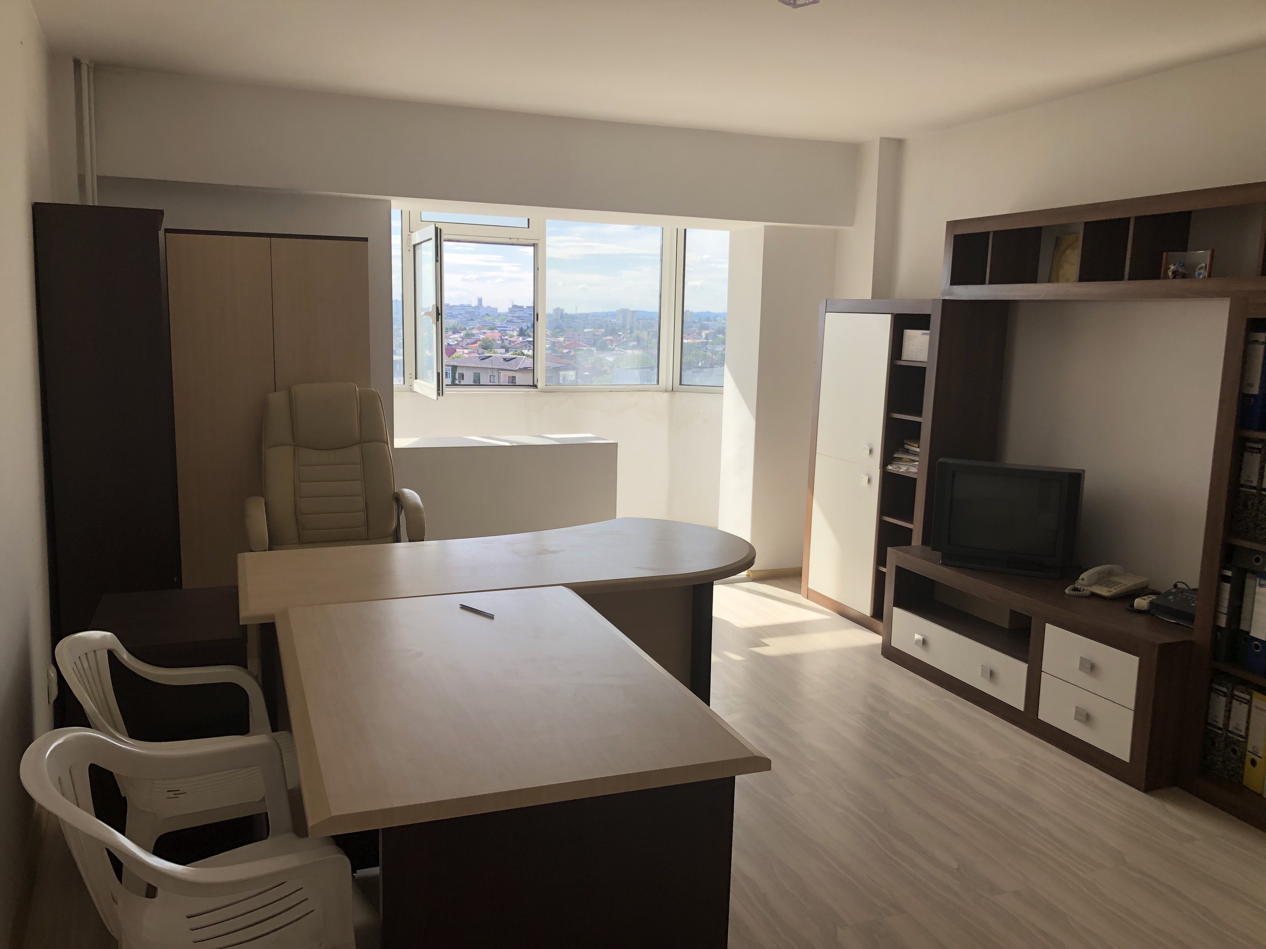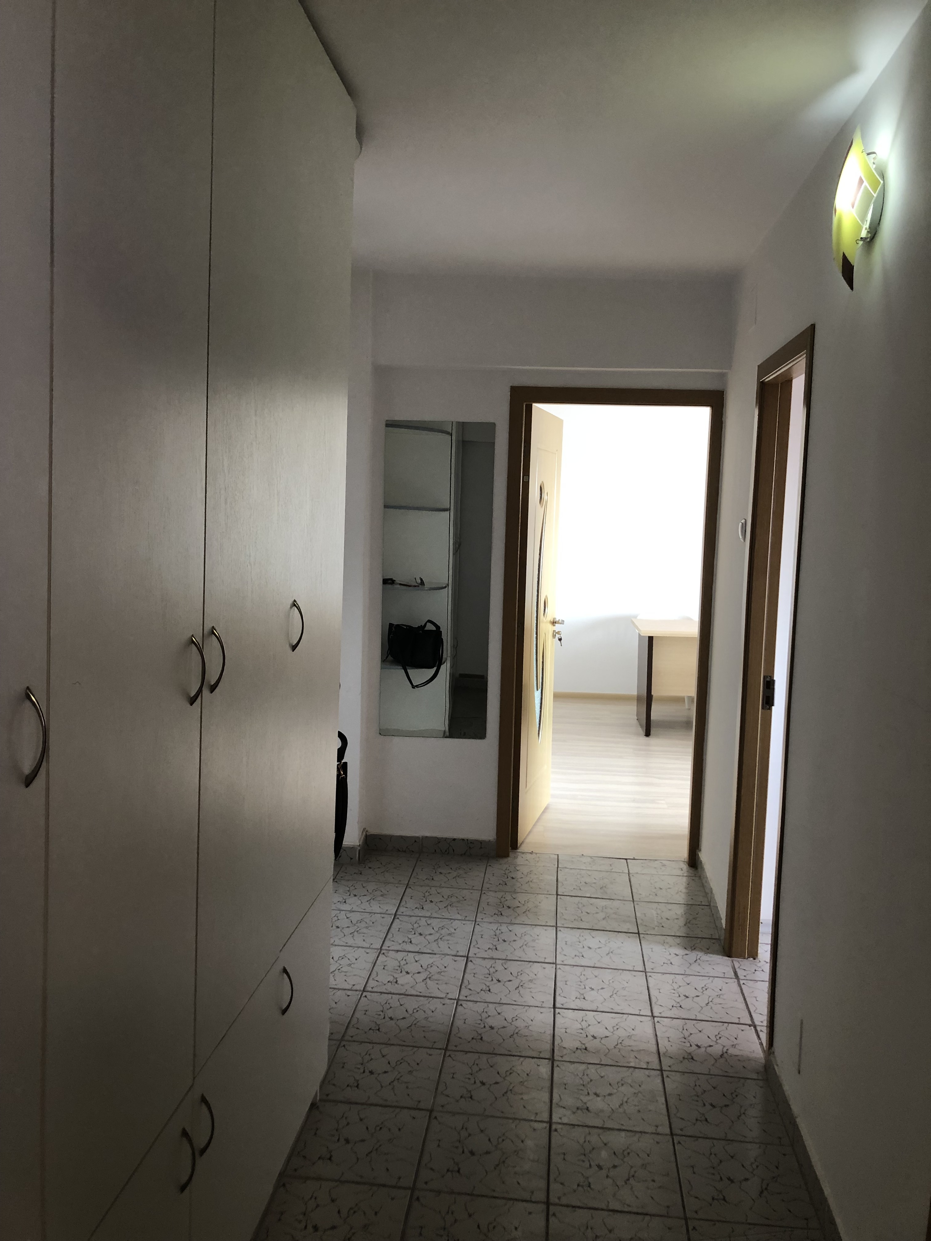 ap 2 cam conf 1 A dec, et 8/10, vedere spate, pe mijloc, Su: 54, 20 mp plus balcon la sufragerie : 3, 60 mp inchis termopan si marita camera cu suprafata balconului si logie la dormitor: 5, 50 mp, Su totala: 63, 30 mp, finisaje: termopan exterior, gresie si faianta in baie si bucatarie, gresie hol, usi interioare noi, parchet laminat in sufragerie si dormitor, dressing mare pe hol, calorifere noi, mobilat si utilat, pretabil locuit sau birou, oferit cu 350 euro/ luna plus 1 luna garantie, vazut MT