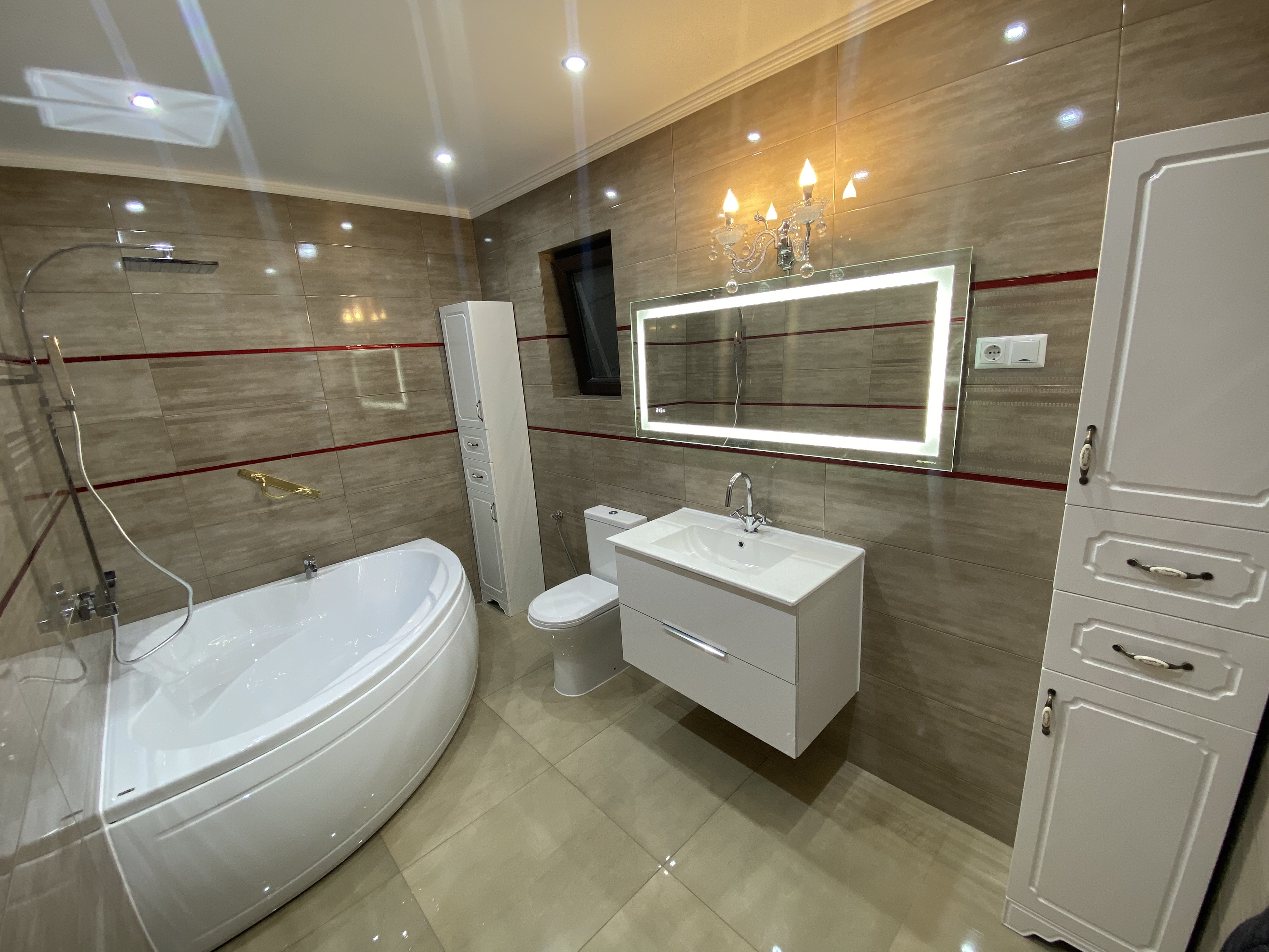- finisaje de lux: termopan exterior, usi interioare de calitate, gresie marmorata in living, bucatarie, gresie si faianta in bai si bucatarie, incalzire in pardoseala, centrala termic noua Vaillant 35 KW in condensatie cu rezervor, calorifere noi, izolata exterior, instalatie curent moderna in cupru